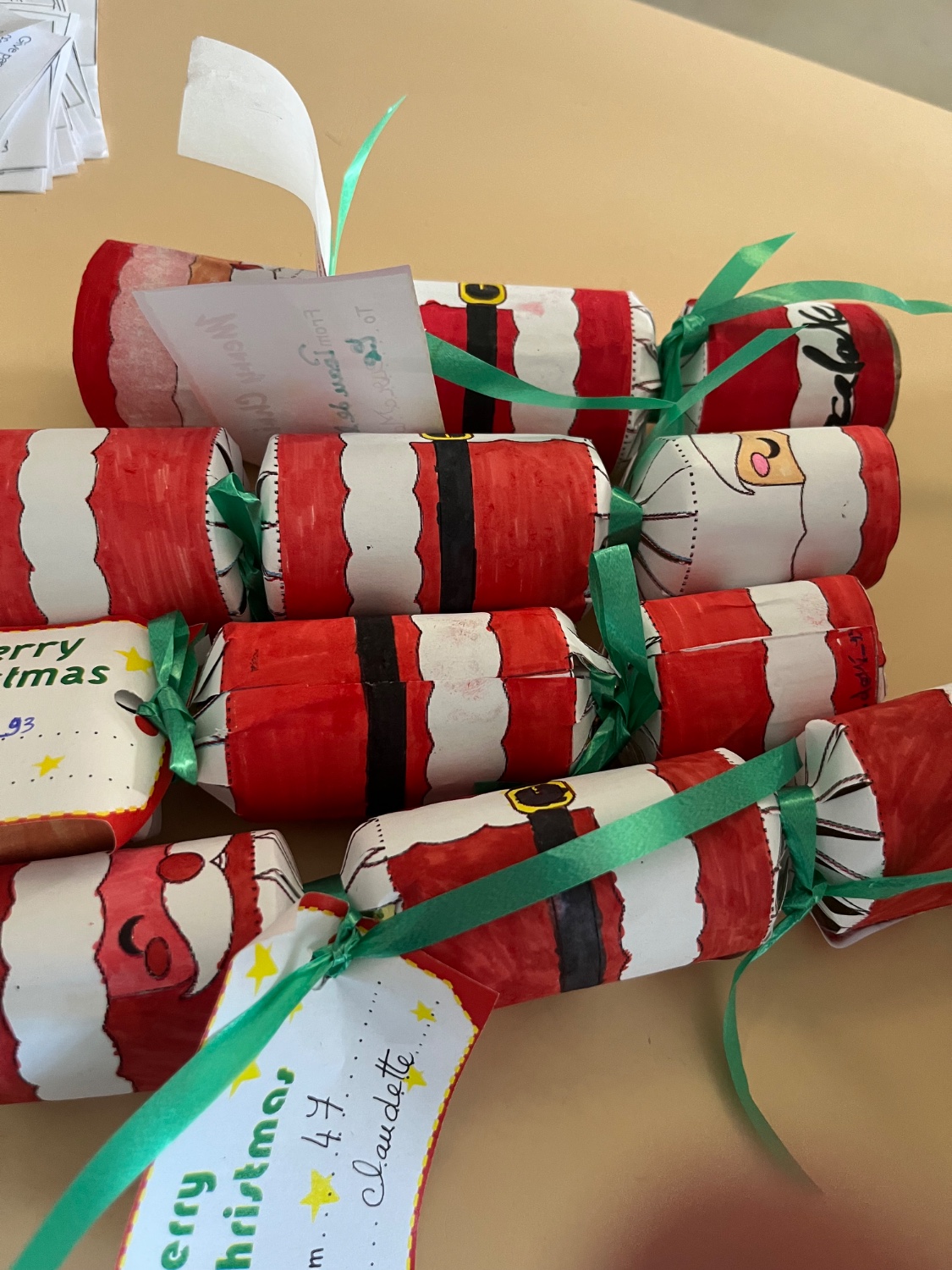Pour prolonger l’activité, ils ont réalisé eux-mêmes leurs propres crackers ou cartes de Noël en classe d’anglais.